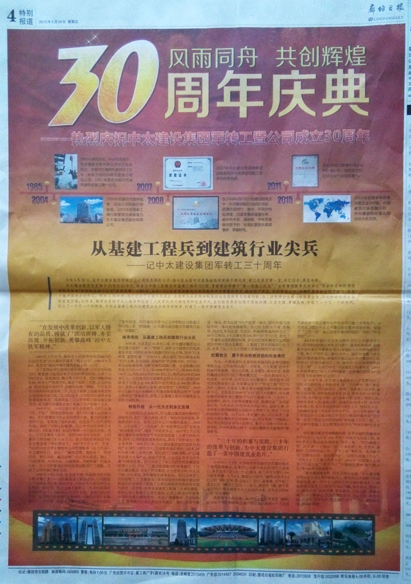 “三十年的積累與實踐,三十年的改革與創(chuàng)新,為中太建設集團打造了一張中國建筑業(yè)名片。”