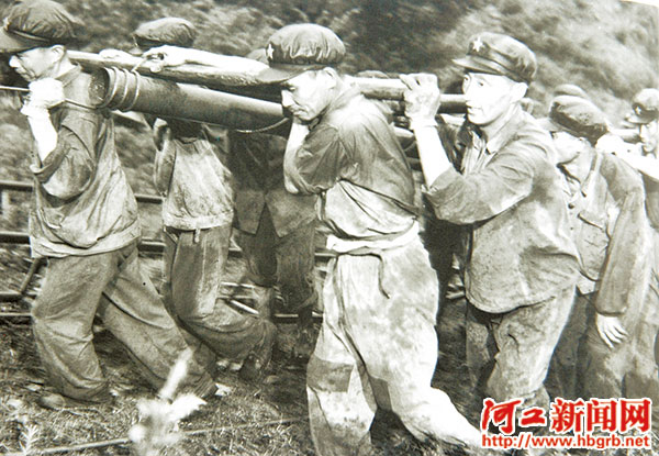 ■戰士們在抗美援越前線運送鋼管等物資
