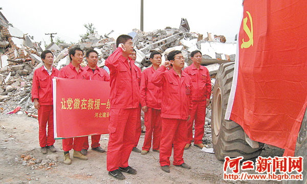 ■2008年汶川地震搶險救災現場舉行入黨儀式