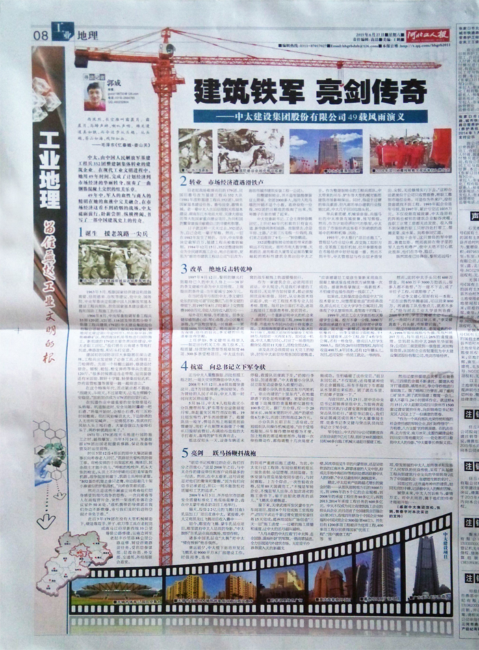 河北工人報以“建筑鐵軍亮劍傳奇”為題報道了中太建設集團49年發展歷程