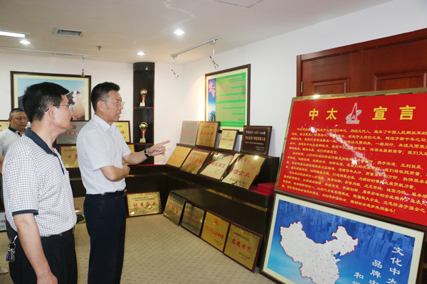 7月23日下午,由省工商聯(lián)副主席常衛(wèi)華帶隊的督導組,在廊坊市委統(tǒng)戰(zhàn)部副部長、工商聯(lián)黨組書記劉玫等領導的陪同下,來到中太建設集團調(diào)研以守法誠信為重點內(nèi)容的深入開展理想信念教育實踐活動情況,聽取了集團公司黨委副書記、工會主席鐘崇鶴關于集團公司開展以誠信守法為為重點內(nèi)容的理想信念教育實踐活動情況的匯報,觀看了活動宣傳展板、并參觀了集團公司二樓陳列室和十五樓榮譽室。
