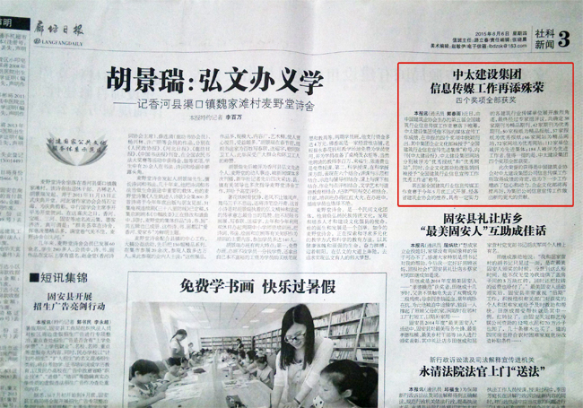 此次榮譽(yù)獲得是中國(guó)建筑業(yè)協(xié)會(huì)對(duì)中太建設(shè)集團(tuán)公司信息傳媒工作所取得成績(jī)肯定,也為下一步工作增添了信心和動(dòng)力。企業(yè)文化部將再接再厲,為集團(tuán)公司信息宣傳工作做出新更大貢獻(xiàn)。