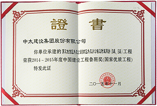 中太建設集團榮獲中國建筑工程魯班獎