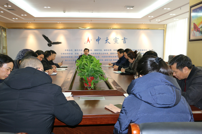 鐘崇鶴同志強(qiáng)調(diào),2018年是貫徹落實(shí)黨的“十九大”精神和集團(tuán)公司三屆黨代會精神的開局之年,也是集團(tuán)公司“深化內(nèi)部改革、創(chuàng)新轉(zhuǎn)型升級、持續(xù)健康發(fā)展”的關(guān)鍵之年,集團(tuán)黨建工作要與時俱進(jìn),以黨的“十九大”精神為統(tǒng)領(lǐng),從實(shí)際出發(fā),緊緊圍繞國家“十三五”戰(zhàn)略發(fā)展規(guī)劃目標(biāo)及企業(yè)當(dāng)前與階段性的中心工作任務(wù),積極開展有益于員工政治思想與身心健康的各項(xiàng)工作活動,在企業(yè)的經(jīng)營管理發(fā)展中充分發(fā)揮好基層黨組織的凝聚力和黨員的模范帶頭作用,為打造中太系統(tǒng)的七大板塊發(fā)展戰(zhàn)略,增強(qiáng)中太可持續(xù)發(fā)展的經(jīng)濟(jì)綜合實(shí)力和核心競爭力,完成好2018年集團(tuán)公司各項(xiàng)工作任務(wù)和發(fā)展目標(biāo),實(shí)現(xiàn)中太的科學(xué)持續(xù)、健康和諧發(fā)展?fàn)I造積極向上的良好氛圍和環(huán)境,為推動企業(yè)黨建工作的全面建設(shè)和河北廊坊的繁榮發(fā)展及實(shí)現(xiàn)黨中央提出的“四個全面”發(fā)展戰(zhàn)略目標(biāo)做出新的更大貢獻(xiàn)。