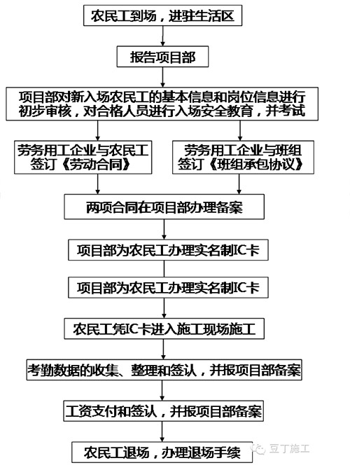 在勞務管理上,要重點抓好“四關”,即實名制管理關、合同簽訂關、工作考勤關、工資發放關,從根本上維護項目穩定。在合同簽訂關中,要重點監督勞務工人與勞務公司、勞務工人與班組之間的合同簽訂,將勞務管理細化到班組和個人。