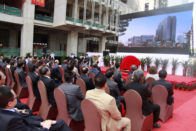 建設(shè)部、外交部、北京市建委、北京外交人員服務(wù)局等領(lǐng)導(dǎo)、阿根廷駐華大使、集團(tuán)董事局主席李文健啟動(dòng)結(jié)構(gòu)封頂儀式