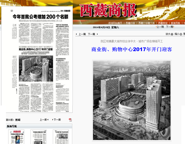 西藏商報報道中太建設集團投資建設西藏最大城市綜合體