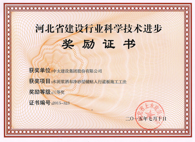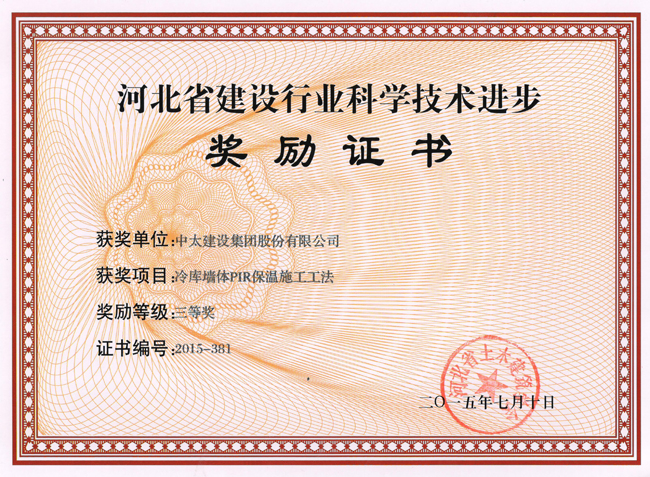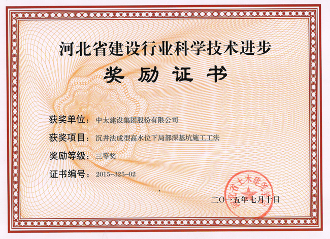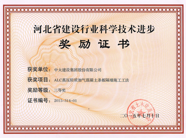 2015年河北省建設行業科學技術進步獎勵證書匯總